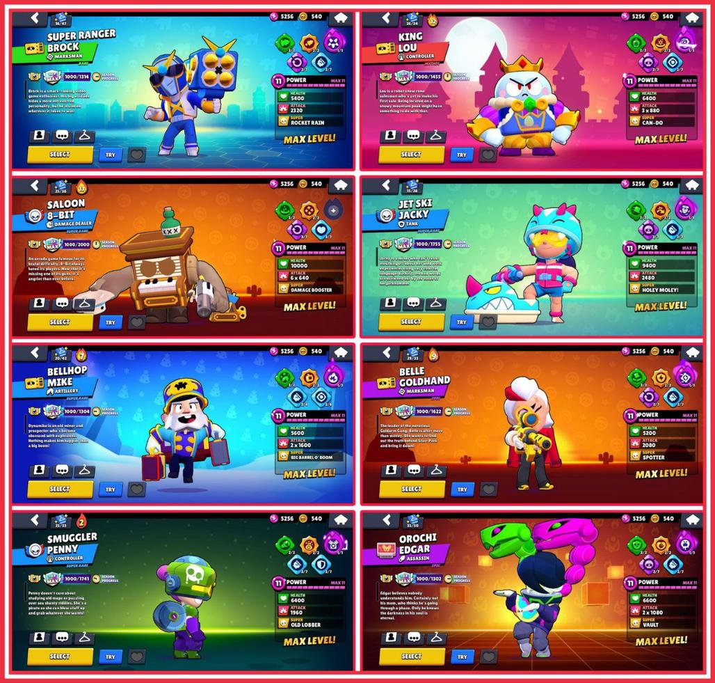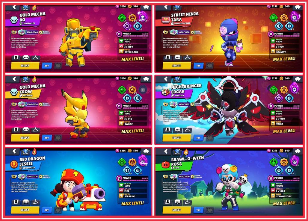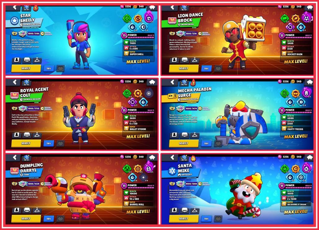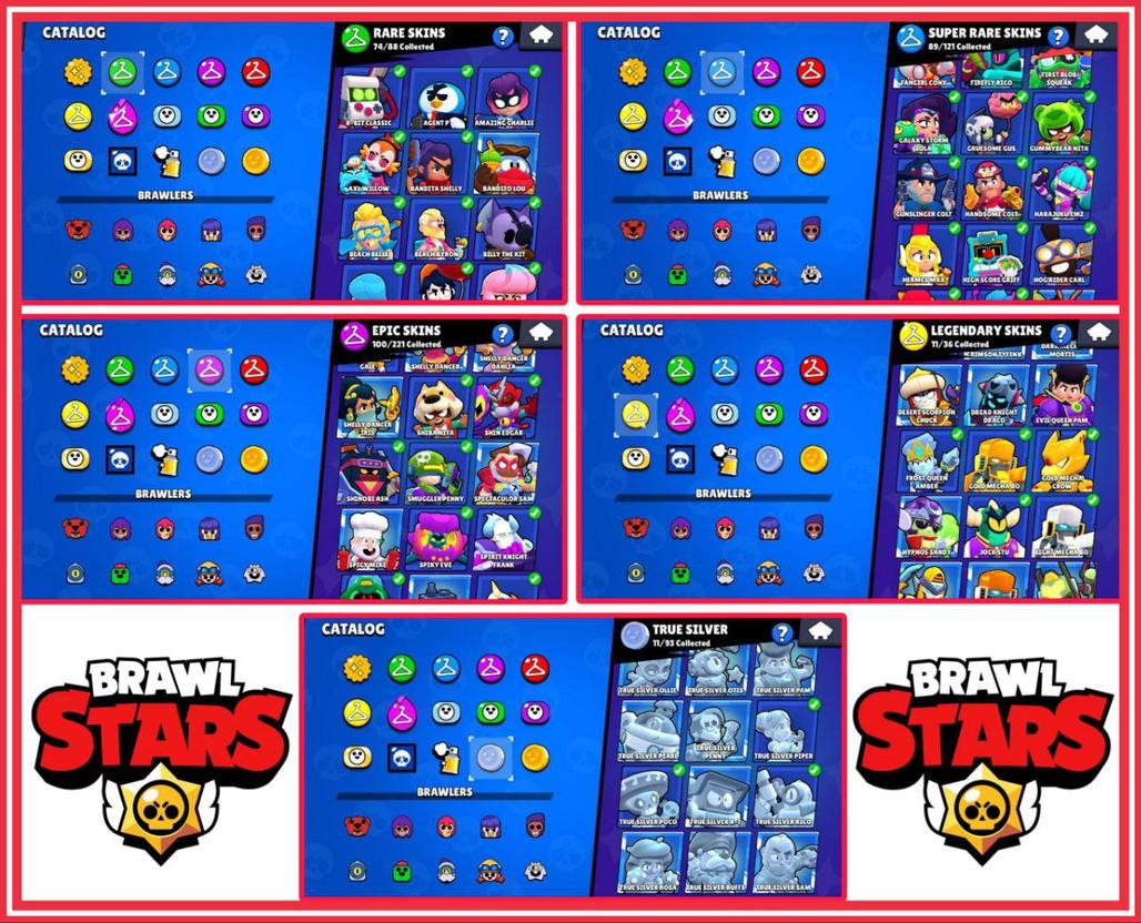 STAR SHELLY, LION DANCE BROCK, ROYAL AGENT COLT, SANTA MIKE, DUMPLING DARRYL, MECHA PALADIN SURGE, KING LOU, SALOON 8-BIT, BELLE GOLDHAND, SMUGGLER PENNY, JET SKI JACKY, BELLHOP MIKE, SUPER RANGER BROCK, OROCHI EDGAR, STREET NINJA TARA, RED DRAGON JESSIE, NIGHTBRINGER EDGAR, BRAWL-O-WEEN ROSA, GOLD CROW & BO, 11x TRUE SILVER SKINS!