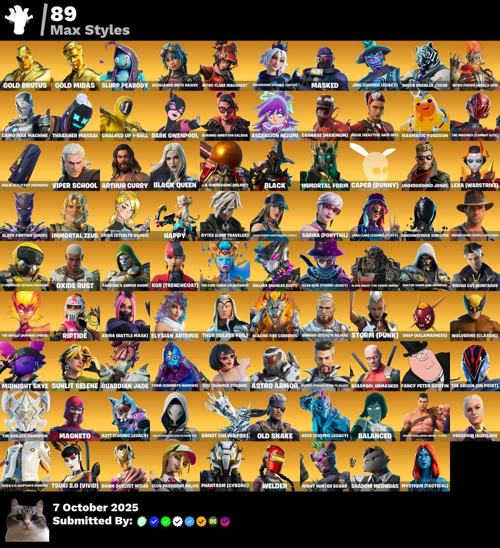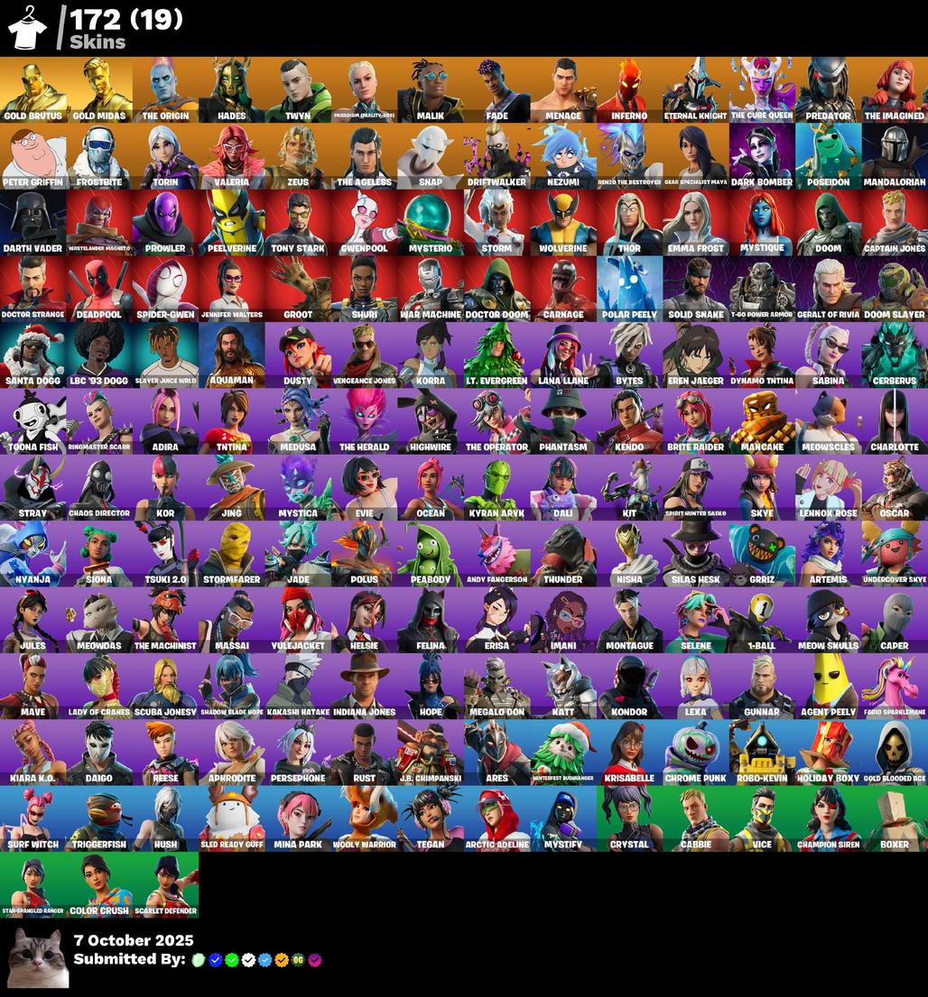 172 Skins | Caper - Surf Witch - Color Crush - Laugh It Up - Tony Stark - Crystal - Hush - Champion Siren - Dark Bomber