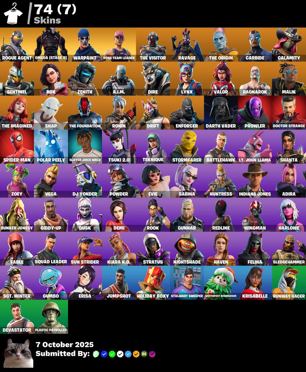 74 Skins | OG STW Deluxe Edition | Power : | Spider-Man - Evie - Demi - Drift - Zoey - Orange Justice - Rogue Agent