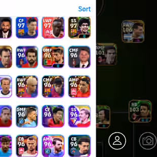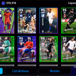 (3 Biltz Curler) Lamin Yamal Biltz 105 I Veiri Biltz 105 I Cherki 105 BiltzI Nuno 103 I 104 I Puyol 102 I Maradona 101 I Hazard 102 I Haland 102 I Endrick 101 I Only Konami I