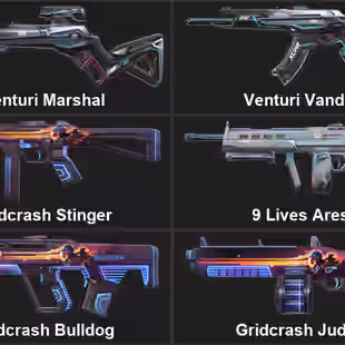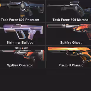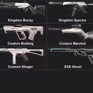 Kingdom Spectre, Hivemind Spectre, Hivemind Vandal, Hivemind Ares, Kingdom Phantom, Kingdom Bucky, Couture Frenzy, POLYfox Guardian, POLYfox Sheriff, Couture Stinger, Vendetta Ghost, Couture Bulldog, Couture Marshal, .EXE Odin, POLYfox Bulldog, POLYfox Judge