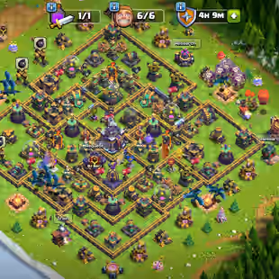 B250-[]💥TH17 DEFENSE FULL MAX💥[]HERO-76-100-60-66-32 [] EPIC-GG-EB MAX LEVEL [] TROOPS MAX TYPE [] NAME CHANGE INSTANT