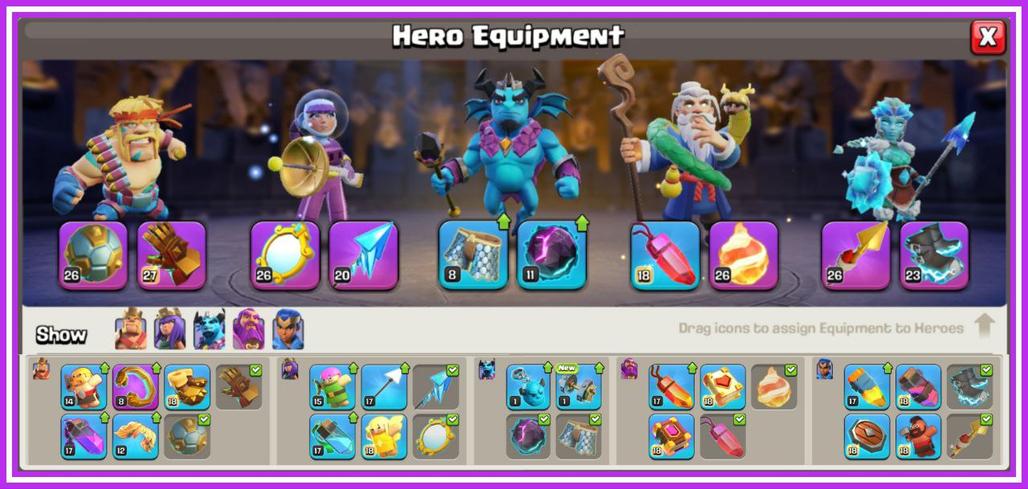 (CHEAPEST) FULL MAX TH 17 EPIC EQUIPMENTS MAXED SCENERY 16 SKINS 4 HEROES MAXED MAX BUILDER BASE 7K LEGEND CUPS
