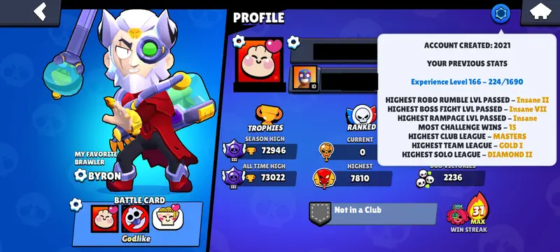 🚀 73K+ Trophies – Powerful Brawler Lineup!