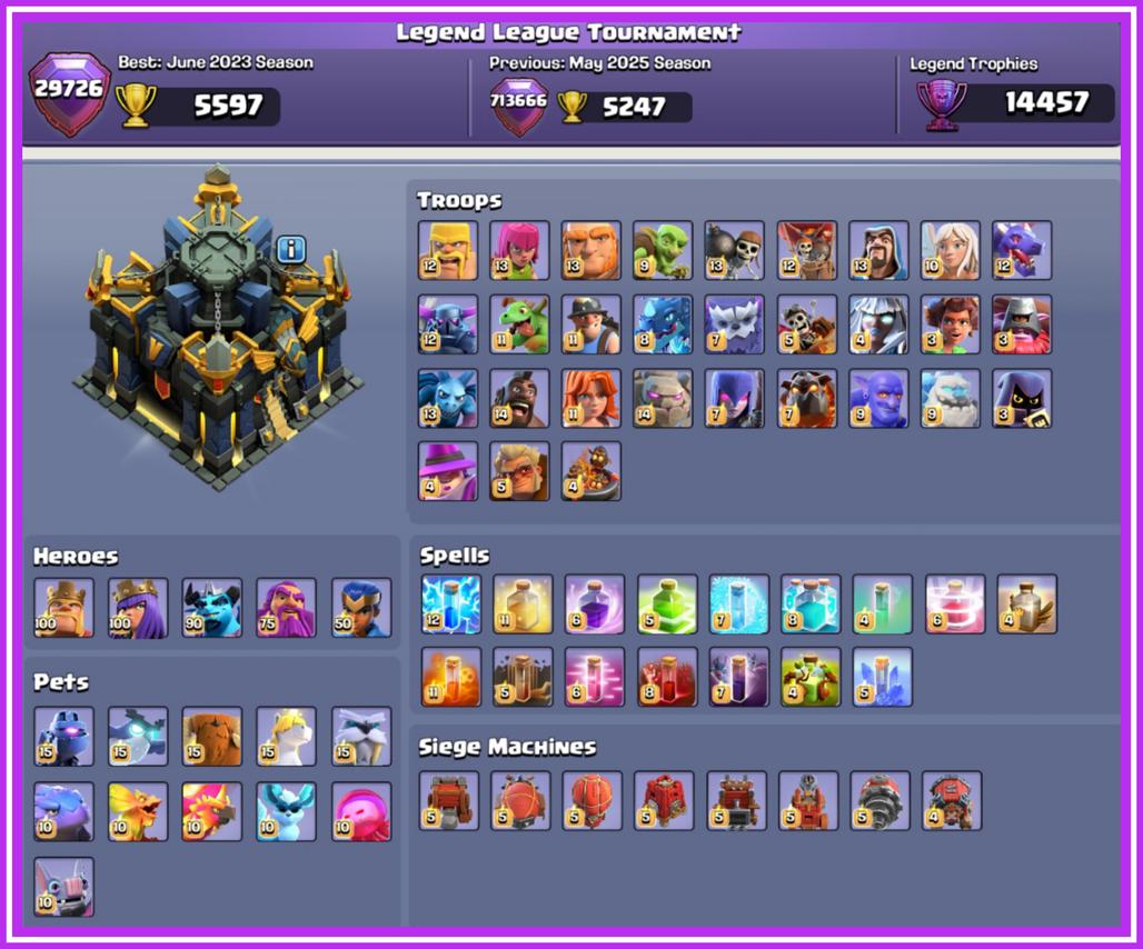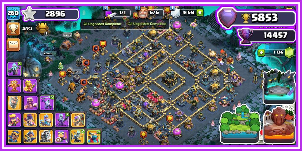 FULL MAX TH17 | FULL MAX HEROES | XP 260 | GOOD SCENERY AND SKINS | 14458 CUPS | INSTANT DELIVERY |