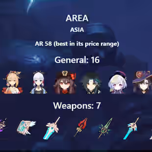 Genshin Impact Account // Europe Server // A starter account at Adventure Rank 19 with an email linked // Features the five-star characters Wriothesley, Raiden Shogun, Tighnari, and Mona // The account also has Bennett at Constellation 2 (G)