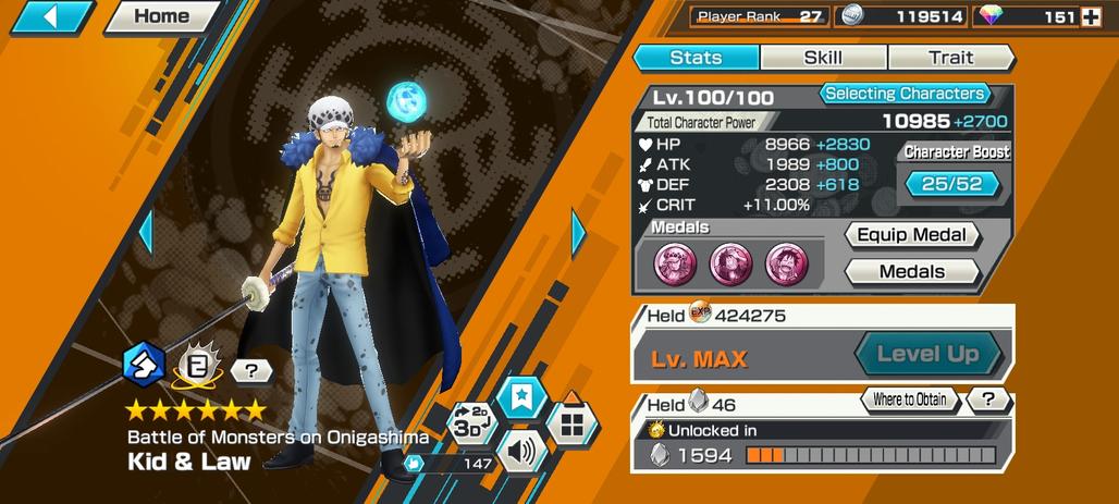 IOS-Android-Kid Law Max-Good Medal-SP 129%-Good BF Hakuba max-Rayleigh-Luffy-Cracker-HP777