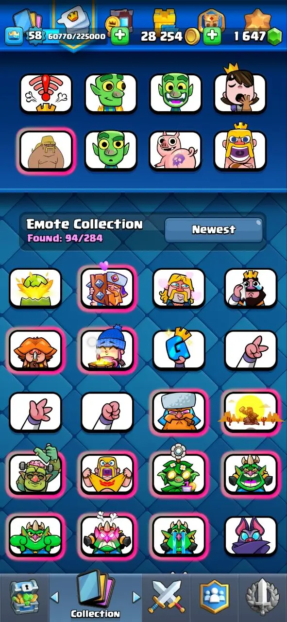 🔥KT15 XP58🔥 | 79 MAX 15 ELITE | 14 EVOLOTIONS | 14250 TROPHY | 94 EMOTES | 8 TOWER SKIN | 1647 GEMS | INSTANT DELIVERY