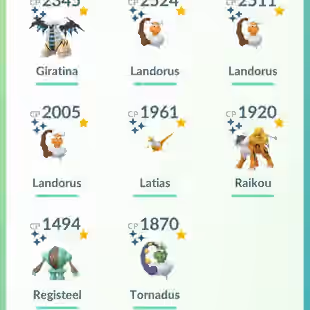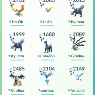 • Legendary & Shiny  : 14 [ Articuno, Groudon (2), Landorus (2), Mesprit, Palkia, Regirock, Reshiram, Tapu Bulu, Terrakion, Xerneas, Yveltal, Zacian]