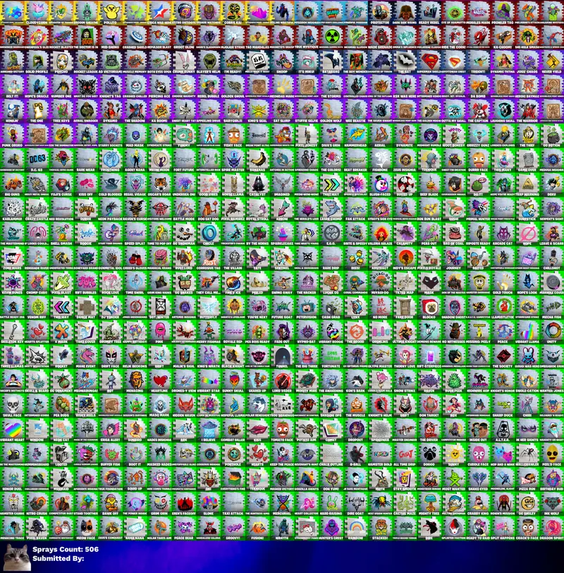 🖌 Sprays: 506 — Versatile sprays to mark your territory and commemorate key moments. 🎨