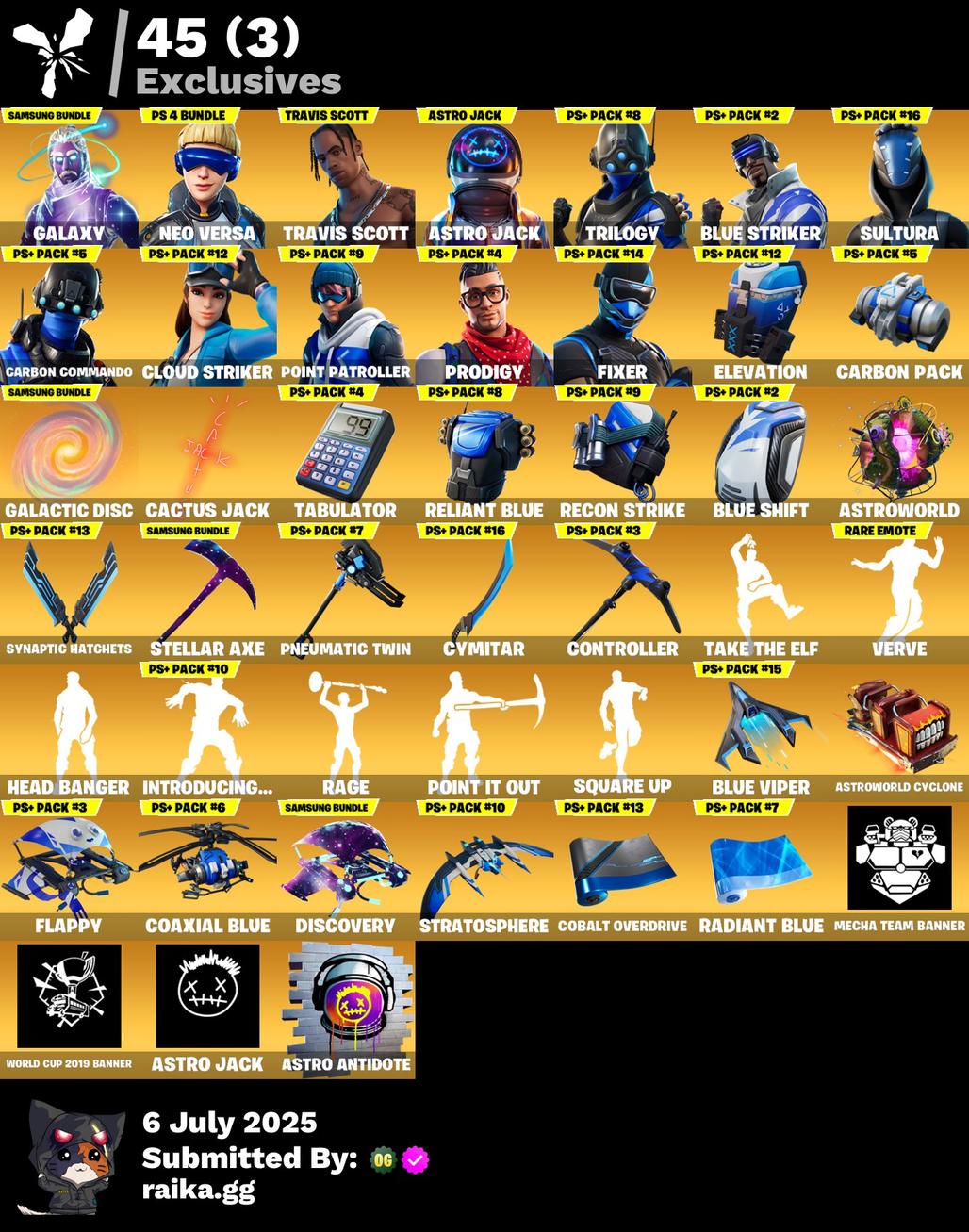 PC PSN Xbox Nintendo 136 skins | Travis Scott | Galaxy | Neo Versa | Astro Jack | Trilogy | Blue Striker | Sultura
