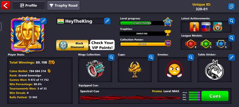 Rarest 5 Digit Account | 5K Cash | 784 million Coins | 100 CCP | Black Diamond | Miniclip | Unlimited Pass Change!