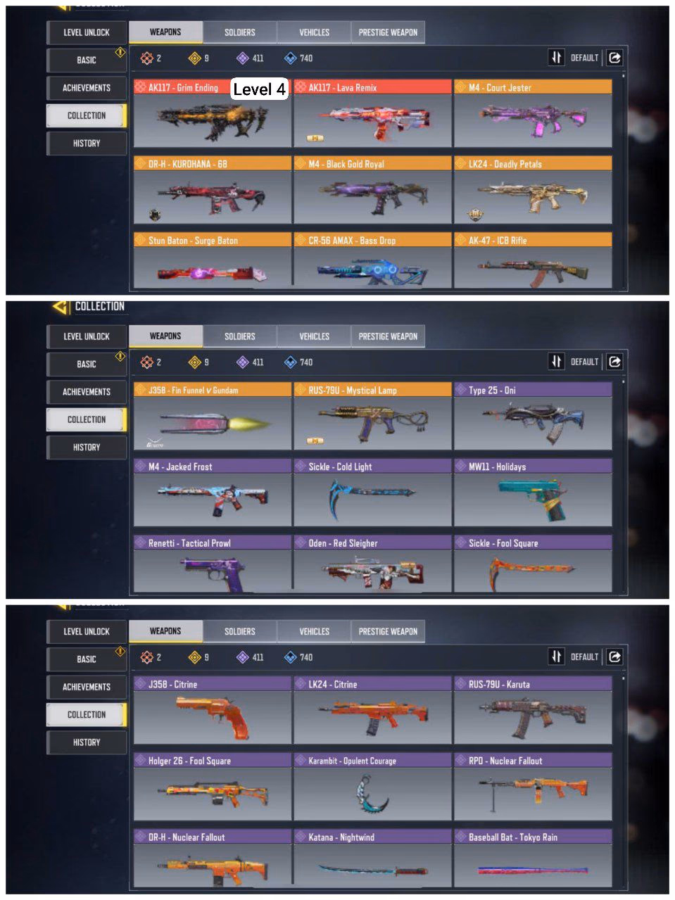STACKED | AK 117 - GRIM ENDING LEVEL 4 | 2 MYTHIC | 9 LEGENDARY | LEVEL 400 | BEST CHARACTERS | 411 EPIC GUNS