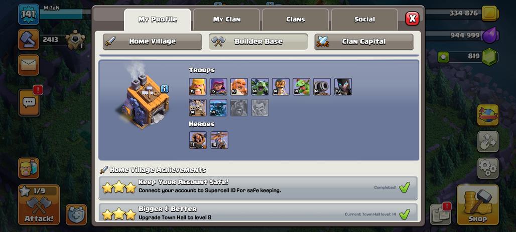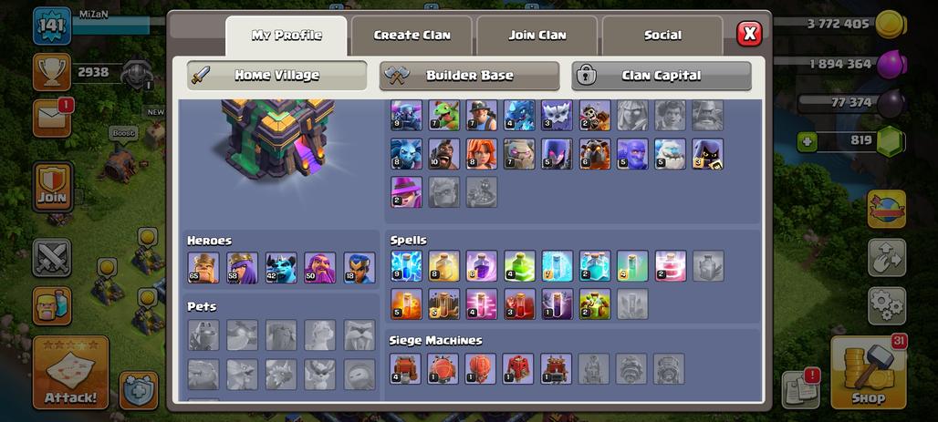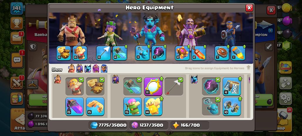 TH 14 | TH 13 MAX| BK 65 AQ 58 MP 42 GW 50 RC 18 | ONE LEGENDARY HERO SKIN | GOOD HERO EQUPMENT | NAME CHANGE FREE |