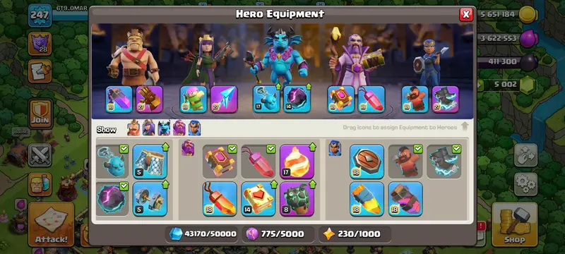🔥[ TH-17 NEAR MAX - 5'000 GEMS ]🔥 GG-FA-EB [MAX] - 16X EQPMNT MAX || MAX WALLS - MAX HEROS || GOLD PASS FREE