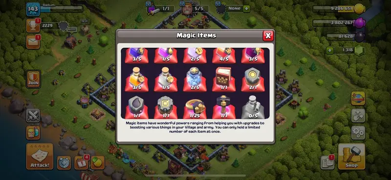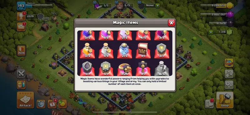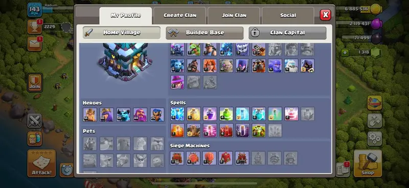 TOWNHALL 13 [] 56-66-50-44-25 HEROES [] RENAME 500 [] MAGIC ITEMS [] AVAILABLE