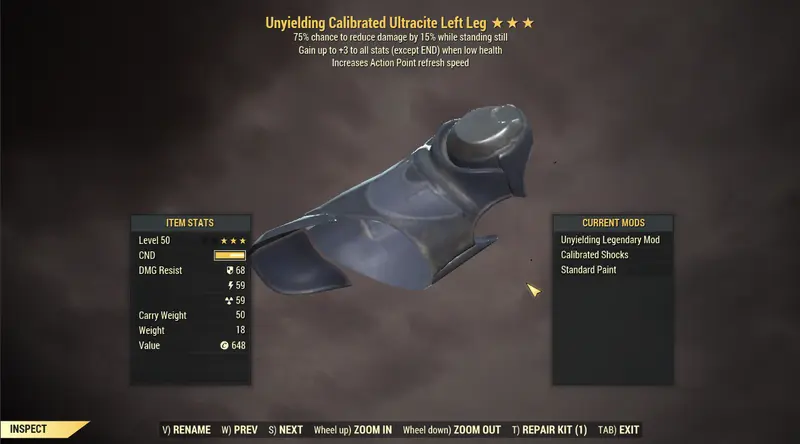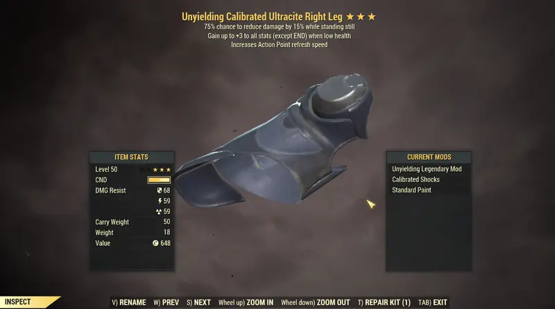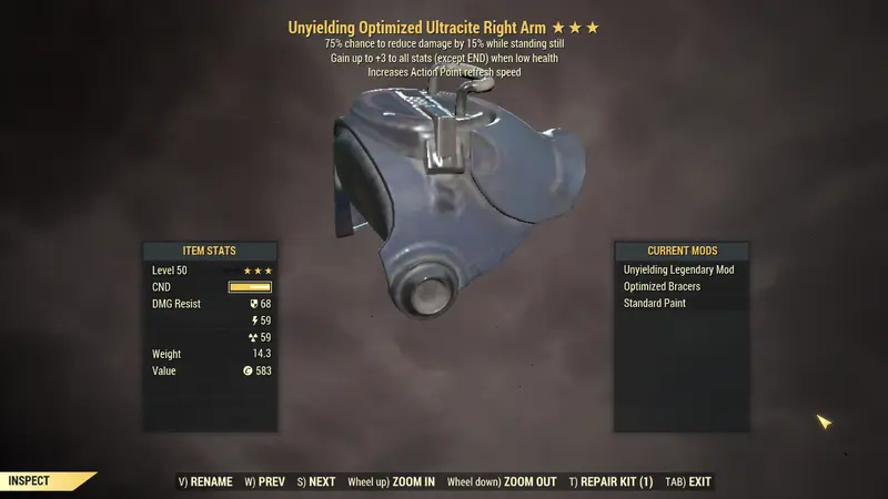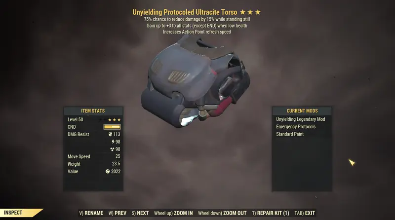 [ PC ] Ultracite Unyielding Sentinel Power Armor Set 5|5 Full AP Refresh Legendary Power Armor (instant delivery)