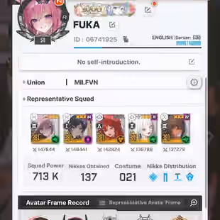 Nikke228 - SEA - 466k Squad power - 129 char & 17 skins - Lv 427 - 105 SSR ( Heros NEW ) - Lv Heros 311 - 182M Credit